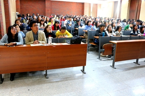 2017年4月11日,郑州中学特级教师张鹏丽老师在经管楼报告厅进行“诗意化的语文教学”讲座。文学院团总支书记张航出席此次讲座,文学院14级同学参加此次讲座。