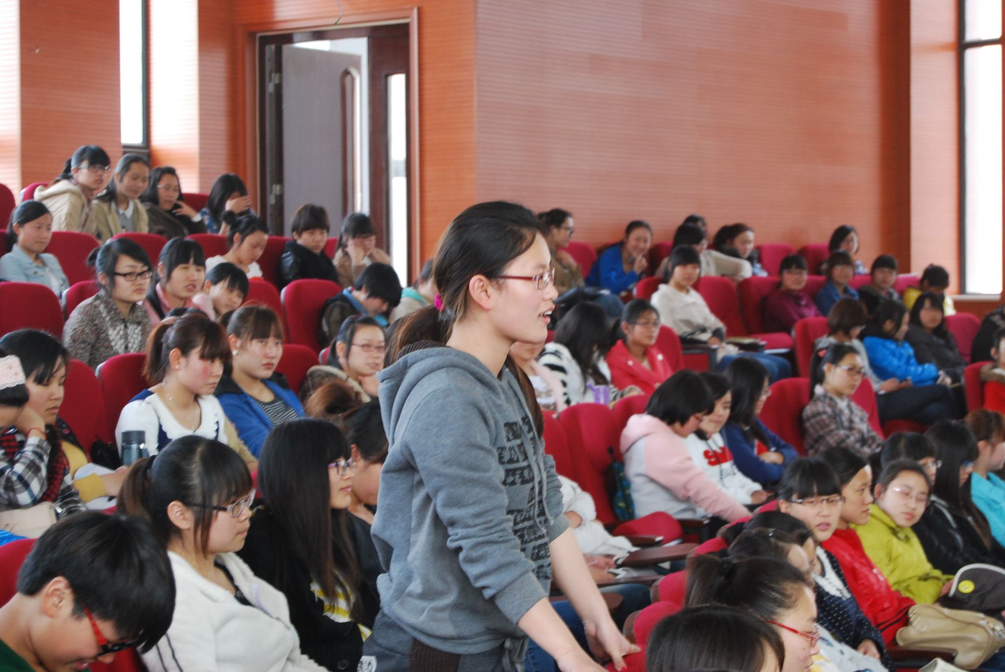 讲堂上,刘老师亲和幽默的讲解使现场气氛活跃。她引用杨澜、希拉里等名人事例教育同学们要做有理想的大学生,还援引自身经历告知同学们要进一步提升自己的品德和魅力,力争做完美女性。此外,刘老师还为大家讲解了如何选择发型、如何提升美的品味。并为女生纠正坐姿、站姿,讲解如何保持美的状态,鼓励大家做“三力”和“三立”女生。现场互动提问环节中,刘老师还亲自为同学们答疑解惑,使同学们对美有更加细致的体会。