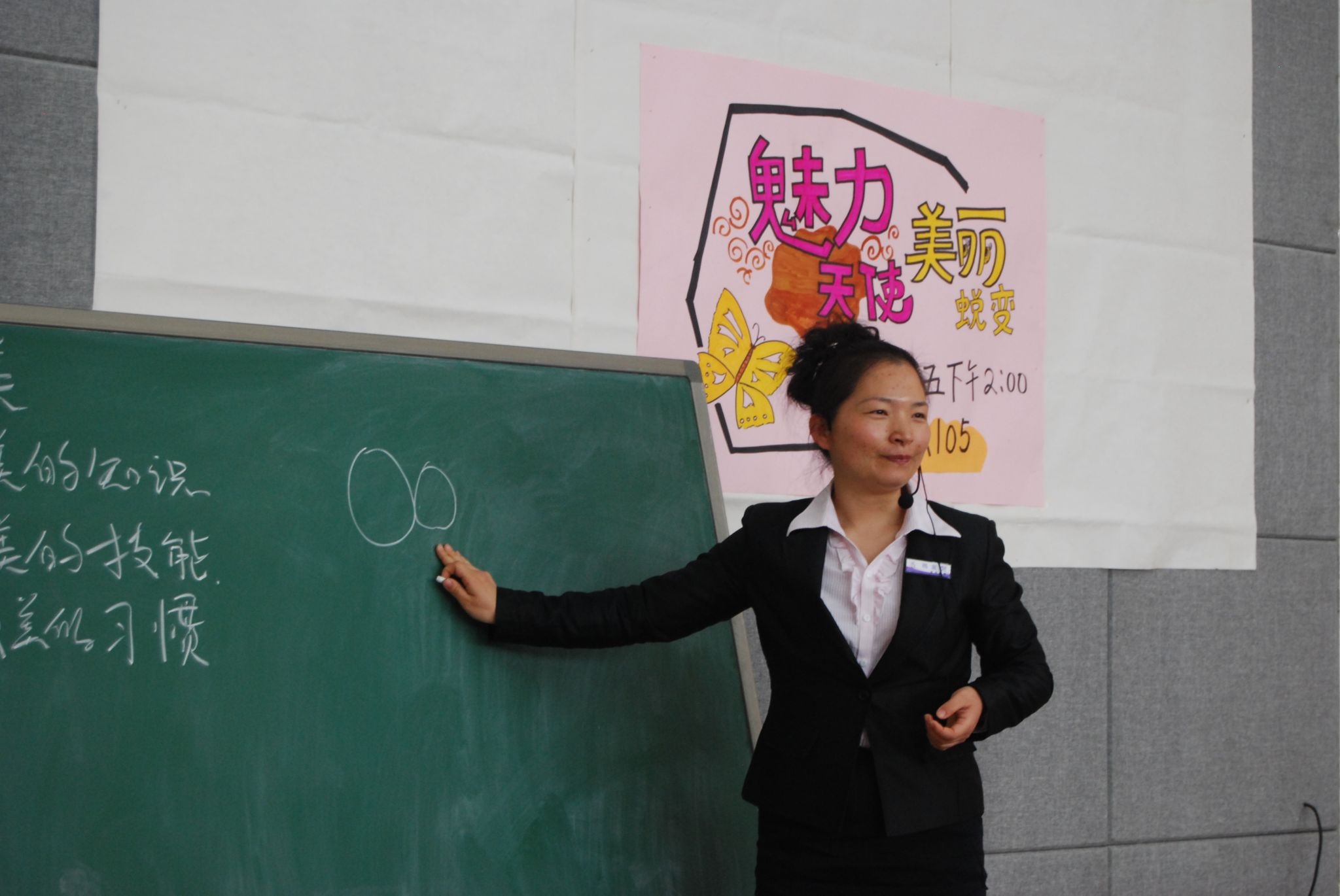 为庆祝妇女节,提升女性魅力,3月8日下午由校青协主办,我院承办的以“魅力天使,美丽蜕变”为主题的讲座在外语楼A105举办。本次讲座由养生美容专家刘占平老师主讲。校团委副书记王珊、辅导员老师温丹华以及部分女同学参加了此次讲座。