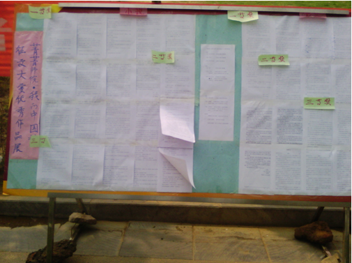 为了展现我院学子风采,挖掘我院校园文学新人,同时也为莘莘学子提供一个抒写丰富的内心世界,展现多姿多彩的校园文化生活的平台,星空文学社特举办了以“菁菁师院·我的中国梦”为主题的校园文学原创作品大赛。5月3日,大赛评选结果在东校区宿舍门口公布,征文大赛优秀作品展同时举办。
