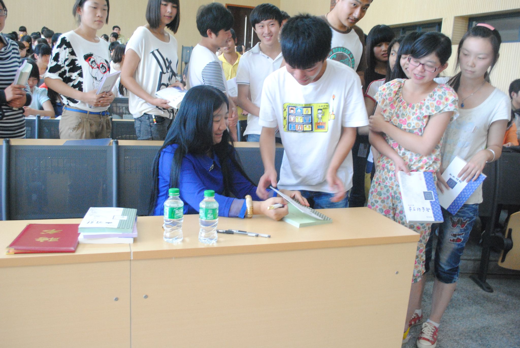 5月11号下午,著名诗人,书法家,慈善家谢向英女士签名售书活动在公共教学楼A201举行,我院书记、辅导员老师及汉语言文学班学生参加了此次活动。