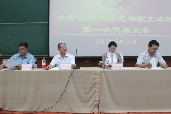 5月21日下午,共青团郑州师范学院文学院第一次代表大会在教学楼B213隆重召开,校团委副书记王珊、院党总支书记李坤陶、副院长刘安军、院团总支书记汪鹏出席会议。