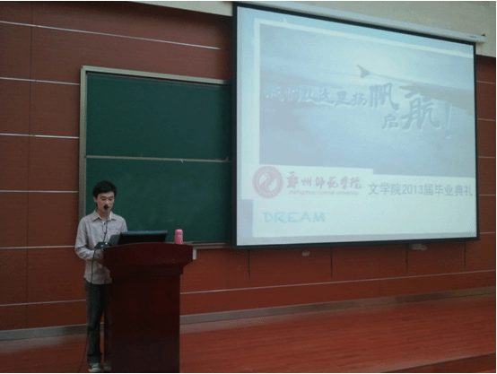 2013年6月4日下午,文学院2013届师范类毕业生毕业典礼在公共教学楼B312成功举办。文学院党总支书记李坤陶、副院长刘安军、团支部书记汪鹏、2013届毕业班辅导员和10级文教专业、09级本科班的学生参加了此次典礼。典礼由文学院团总支书记汪鹏主持。