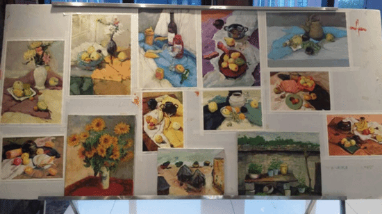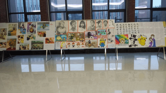 此次作品展共展出作品四十余幅,是文学院各专业学生在学习之余的艺术作品,内容涵盖油画、黑白装饰画、书法﹑水粉﹑素描﹑剪贴画﹑国画﹑卡通动漫创作等多种类别。其中,12级新闻采编与制作三班杨琳的油画作品《向日葵》从独特的艺术角度,用绚丽的色彩展现了瑰丽自然的艺术魅力和青春的活力。13级汉语言文学三班蔡秀珊的水粉画及素描展示出她深厚的绘画功底。展出的作品构思新颖、独出心裁,通过对学生日常生活的特殊感悟及对艺术设计的融合创新,展示出了色彩之美、思想之美和青春之美。