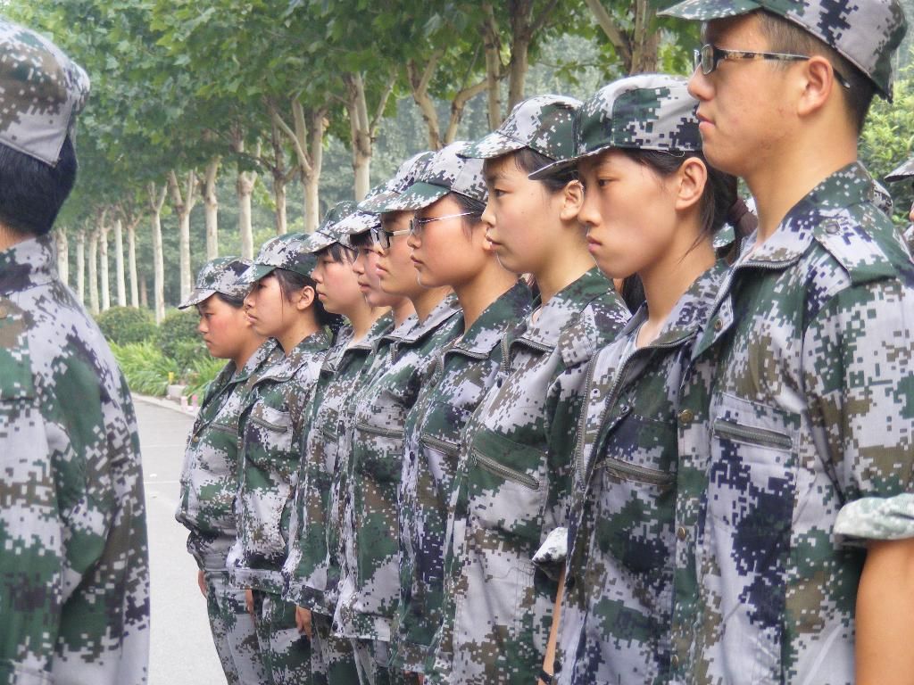 新生总动员后,各位教官带领着自己的新生们到指定地点进行训练。他们最先开始的是站军姿,一个个犹如边疆的白杨树,屹立、挺拔。即使身上的汗水浸透衣衫,也依然一动不动。他们要用行动向别人证明,我能行!在锻炼之余,他们会用拉歌来振奋人心。此时,军训的苦与累早已抛到九霄云外,他们的欢笑,他们的歌声,久久回荡在校园,响彻每一个角落。