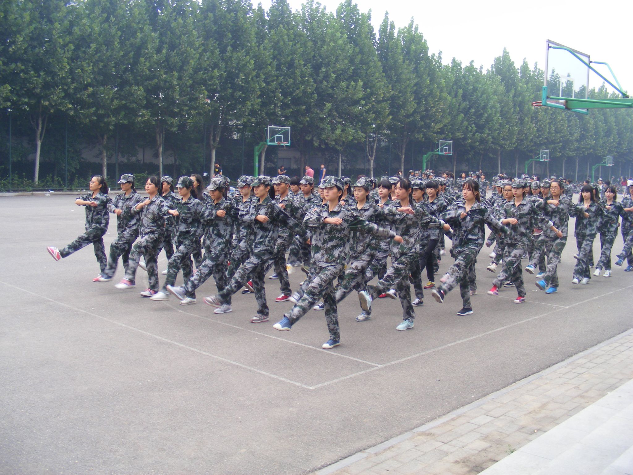 近日来,不断的降雨使得秋意渐浓,气温也随之迅速下降。然而在校园内,文学院2014级新生仍身着军装,一丝不苟地进行着军事训练。