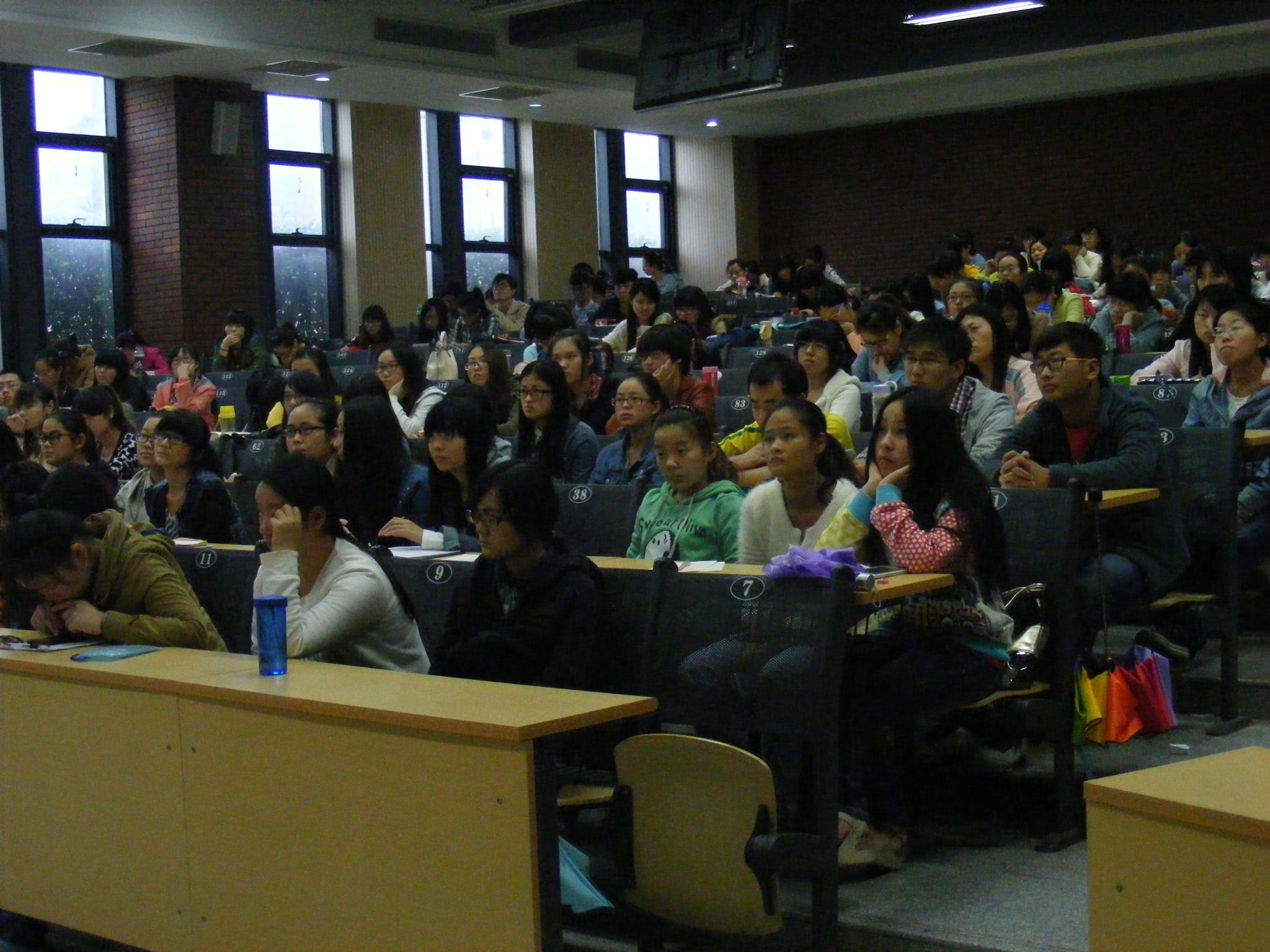 随后,郑州大学的鲁六教授又为大家倾囊相授了有关汉语国际教育的考研展望。通过对当今全球汉语热概况的讲解,来增加同学们对此专业的了解,明确考研及将来就业的方向。同时,还选取了一些典型的考研试题,与同学们进行了答题互动通过。会上,同学们积极参与,会场中交流热情高涨。