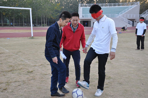 活动开始前,文学院素质拓展部部长谢天林对此次活动作了详细的介绍。活动分为链接加速、坐地起身、心心相印、盲人足球四个分项。每个分项均由专门指定的文学院2013级学生作为项目教练。在活动中,文学院2014级的同学们按照教练的指导,积极热身,认真参与,在每个分项中均有出色的表现。活动结束后,有汉语言文学一班的同学告诉记者,在自己参与的心心相印的活动中,通过与队友的齐心协作,不仅获得了不错的成绩,更从中学到了团队合作的重要性。并表示很乐意于参加此类活动。