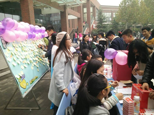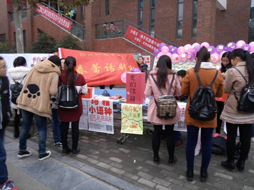11月11日中午12点半,春蕾话剧社在郑州师范学院东校区餐厅门口进行了“有你我不孤单”情书告白展活动。一纸情书,一页心动,让爱浮于纸上,涌出心间。