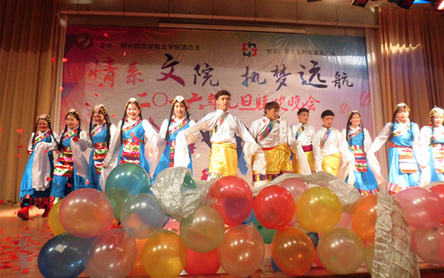 晚会开始,开场舞《绽放》以默契的配合赢得全场的掌声,点燃在场观众们的热情。接着,小品《非诚勿扰》用轻松诙谐的语调真实表现出当代大学生对待爱情的观念和理解;藏舞《缘定萨玛志》舞姿气势磅礴,将大家带至一望无际的大草原上,感受到藏族人民的别致风情;《吉他弹唱》和《舞蹈串烧》用轻灵而娴熟的节奏、动感而激情的舞姿分别与音乐完美的融合。随后,小品《致青春》贴切地描绘出同学们在学习和生活中遇到的问题,表达了希望大家坚守梦想,不忘初心,学业有成,一展鸿图的美好愿望。表演结束后,博得了观众们的阵阵喝彩。而话剧《青春那些事儿》带领着我们一起感受了一场难以忘记的青春,引发场下观众深深的思虑,成为整场晚会的亮点。最后,晚会在藏族群舞中缓缓拉下帷幕,为此次晚会画上完美的句号。