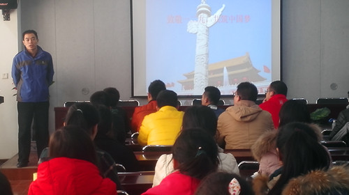 2015年12月15日中午12:00,文学院本学期第二次团课于新校区外语楼B411会议室成功召开。团总支书记张航到场指导,推优部干事桂长银担任主持。