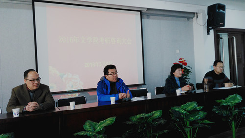 进入3月,全国各高校2015年研究生入学考试的成绩已全部公布。为帮助文学院的同学们更好地准备复试,根据自身考试情况选择合适的调剂学校,3月2日下午3点,文学院在外语楼B411召开了2016年考研咨询会。文学院院长刘钦荣、汉语言文学系主任白玉红、汉语国际教育系主任杜鹃、教学教法教研室主任禹旭红、教学秘书甘浩、文学院党务、学生工作负责人汪鹏出席了本次咨询会。文学院大四近百名同学参加了本次会议。