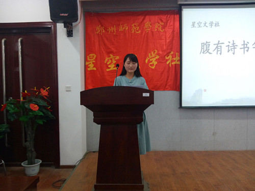 4月25日下午6点,在外语楼B411会议室内,星空文学社举行了“腹有诗书气自华”文学经典朗诵比赛。文学院学生会主席团、星空文学社社长和部分社员、参赛选手参加了此次比赛。