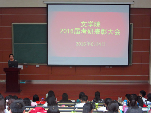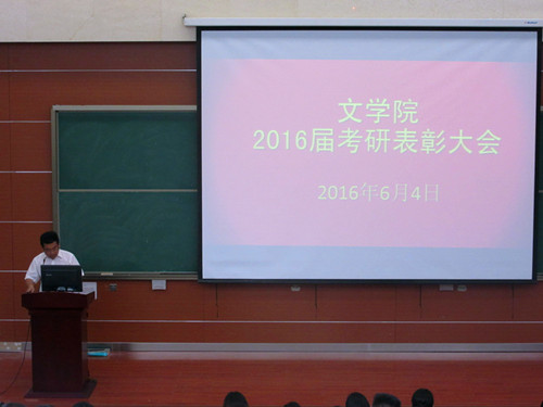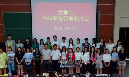 6月4日12点半,文学院在公共教学楼B213教室召开了“文学院2016年考研表彰大会” 。文学院院长刘钦荣、党务学生工作负责人汪鹏、团总支书记张航、辅导员李静远出席此次大会。文学院2012级考研录取同学、2013级汉语言文学专业、汉语国际教育专业同学参加了此次大会。大会由文学院辅导员李静远主持。