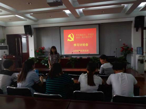 9月5日下午,为深入扎实推进“两学一做”主题教育,文学院学生支部开展了“新时期共产党员思想行为规范”专题学习讨论会。会议由支部书记张瑜文主持,本支部党员参加了本次讨论。