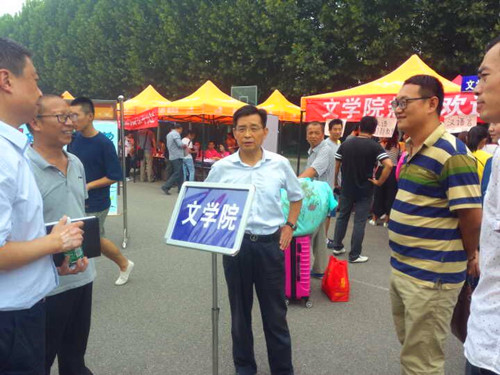 上午,校长赵健、副校长蒋丽珠、孔青,学生处领导及文学院领导等高度重视迎新工作,现场协调解决发现的问题,与新生及家长亲切交谈,询问他们的入学手续办理是否顺利,有无需要帮助之处,并鼓励学生努力学习,珍惜在校时间,树立目标,规划好大学的学习生活。