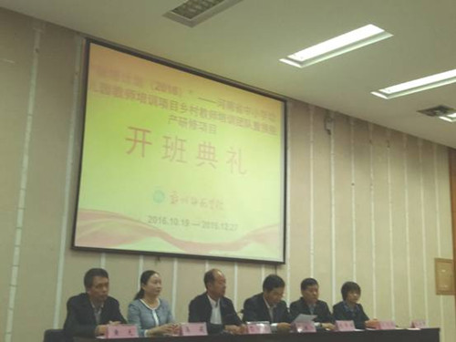 典礼上,贾敏仁向参加培训的学员表示热烈的欢迎,并简要地介绍了学校的历史概况、近几年办学成就以及该校参与“国培计划”取得的良好效果。领导贾敏仁对参加本次培训的学员们提出三点希望:一是希望大家尽快适应自身角色的转变,利用这次机会,实现自身教学技能的突破与提高;二是希望大家树立“终身学习”的理念,持续“充电”、自我完善,不断充实、拓展、提高自己;三是希望大家充分发挥示范引领作用,通过此次培训学习,努力提升教学理论素养、课堂教学能力和研究能力,为深化教育改革,提升教育质量做出新的、更大的贡献。
