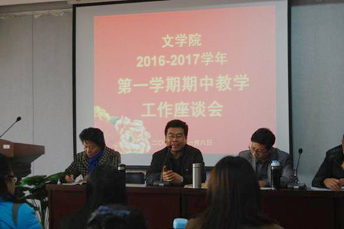 11月8日下午,郑州师范学院文学院在外语楼B411召开了期中教学检查工作的学生座谈会。会议由文学院教学管理办公室和学生会学习部联合举办,文学院院长刘钦荣教授、汉语国际教育系主任杜鹃教授、公共教学与教法研究室主任禹旭红教授、文学院教学管理办公室甘浩副教授、负责学生管理的邱琳老师以及文学院17个教学班20余名同学参加了座谈会。