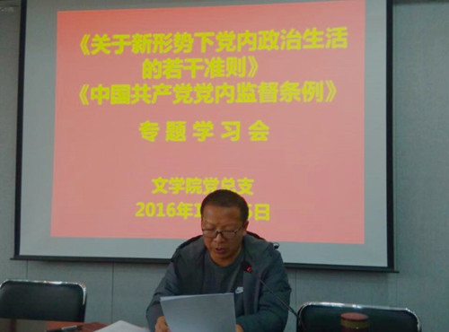 2016年11月15日下午三点半,郑州师范学院文学院在外语楼会议室B411成功召开党总支部会议,文学院党总支书记李坤陶,党务、学生工作负责人汪鹏,教学秘书甘浩等人出席了此次会议。