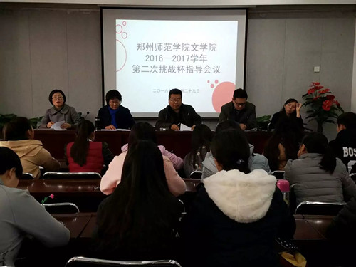 2016年11月29日下午1时30分,文学院挑战杯第二次会议于外语楼B411会议室成功召开。文学院党务、学生工作负责人汪鹏主持本次会议,文学院院长刘钦荣、汉语国际教育系主任杜鹃、文学院教师牛巧红以及文学院辅导员张瑜文出席此次会议。