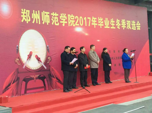 2016年12月3日上午九点,郑州师范学院就业指导中心于东校区综合训练馆外召开就业招聘双选会。河南省教育厅学生处副处长李玉伟、郑州市人社局党组成员康中超、郑州农管中心党委书记卢咏梅、郑州师范学院党委书记于向英、副校长贾敏仁出席此次开幕式。