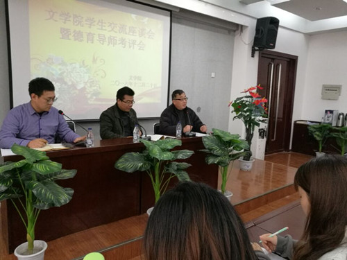 2016年12月20日,文学院在外语楼B411会议室召开本学期学生交流座谈会暨德育导师考评会。出席此次会议的有文学院院长刘钦荣、副院长刘安军、文学院党务、学生工作负责人汪鹏、文学院各德育导师以及文学院所有班级的学生代表。