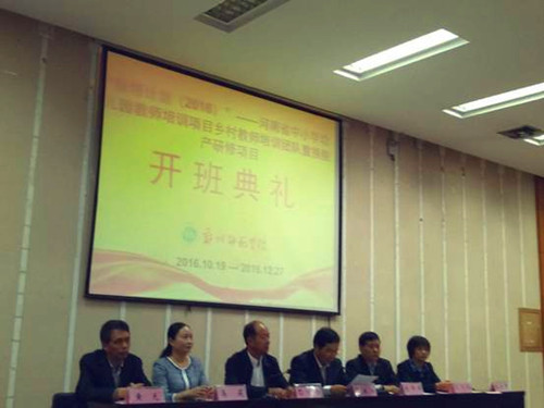 典礼上,贾敏仁领导向参加培训的学员表示热烈的欢迎,并简要地介绍了学校的历史概况、近几年办学成就以及该校参与“国培计划”取得的良好效果。贾敏仁领导对参加本次培训的学员们提出三点希望:一是希望大家尽快适应自身角色的转变,利用这次机会,实现自身教学技能的突破与提高;二是希望大家树立“终身学习”的理念,持续“充电”、自我完善,不断充实、拓展、提高自己;三是希望大家充分发挥示范引领作用,通过此次培训学习,努力提升教学理论素养、课堂教学能力和研究能力,为深化教育改革,提升教育质量做出新的、更大的贡献。