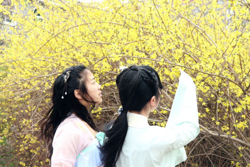 “百花生日是良辰,未到花朝一半春。”2017年3月12日,寒钟国学社各部成员在社长寇梦鸽的带领下,身着汉服前往碧沙岗公园参加花朝节游园活动和祭拜大典。