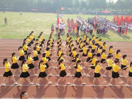 入场完毕后,同学们进行了精彩绝伦的健身操表演,她们的活力把现场的气氛抬到了最高点。在庄严的升旗仪式后,振奋人心的运动会正式开始了。