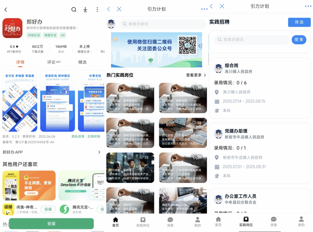 项目简介:2025年“引力计划”大学生政务实践活动由中共郑州市委组织部、郑州市人力资源和社会保障局、共青团郑州市委联合发起,旨在以政务实践活动为切入点,深入学习贯彻党的二十大和习近平总书记在同团中央新一届领导班子集体谈话时的重要讲话精神,助力郑州争创国家吸引集聚人才平台,加强青年人才储备,引导优秀大学生走进郑州、认识郑州。