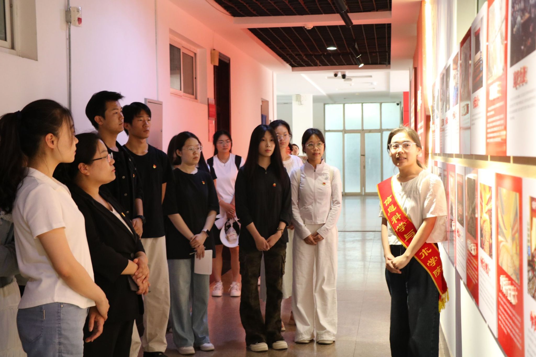 文学院教工党支部书记赵莉、学生第一党支部书记赵彦、传播学院学生党支部书记温然,以及两个学院师生党员30余人,在信息科学与技术学院接待员的讲解下,共同参观了崇仁楼一楼的党史长廊。参观结束后,大家在文质楼C115开展“党组织结对共建”交流研讨会。