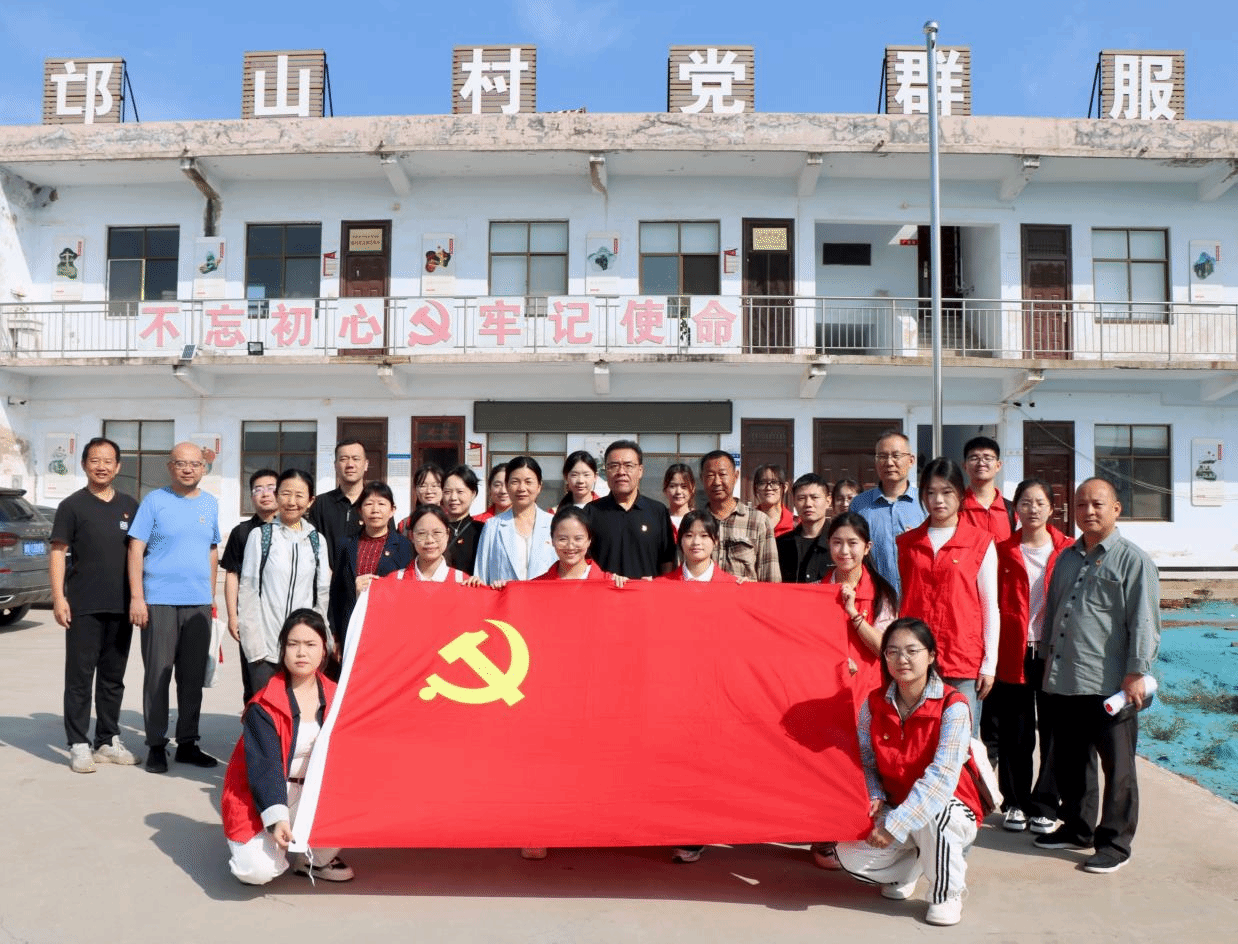 2025年9月30日,文学院党总支组织教工党支部、学生第一党支部、学生第二党支部等全体师生党员,乘车赴荥阳市邙山村开展帮扶助农活动及校地支部共建交流学习。