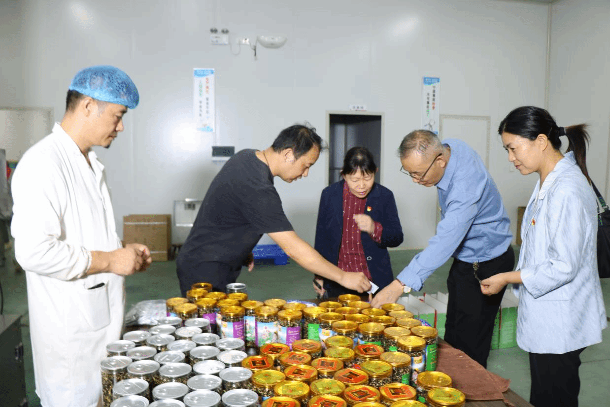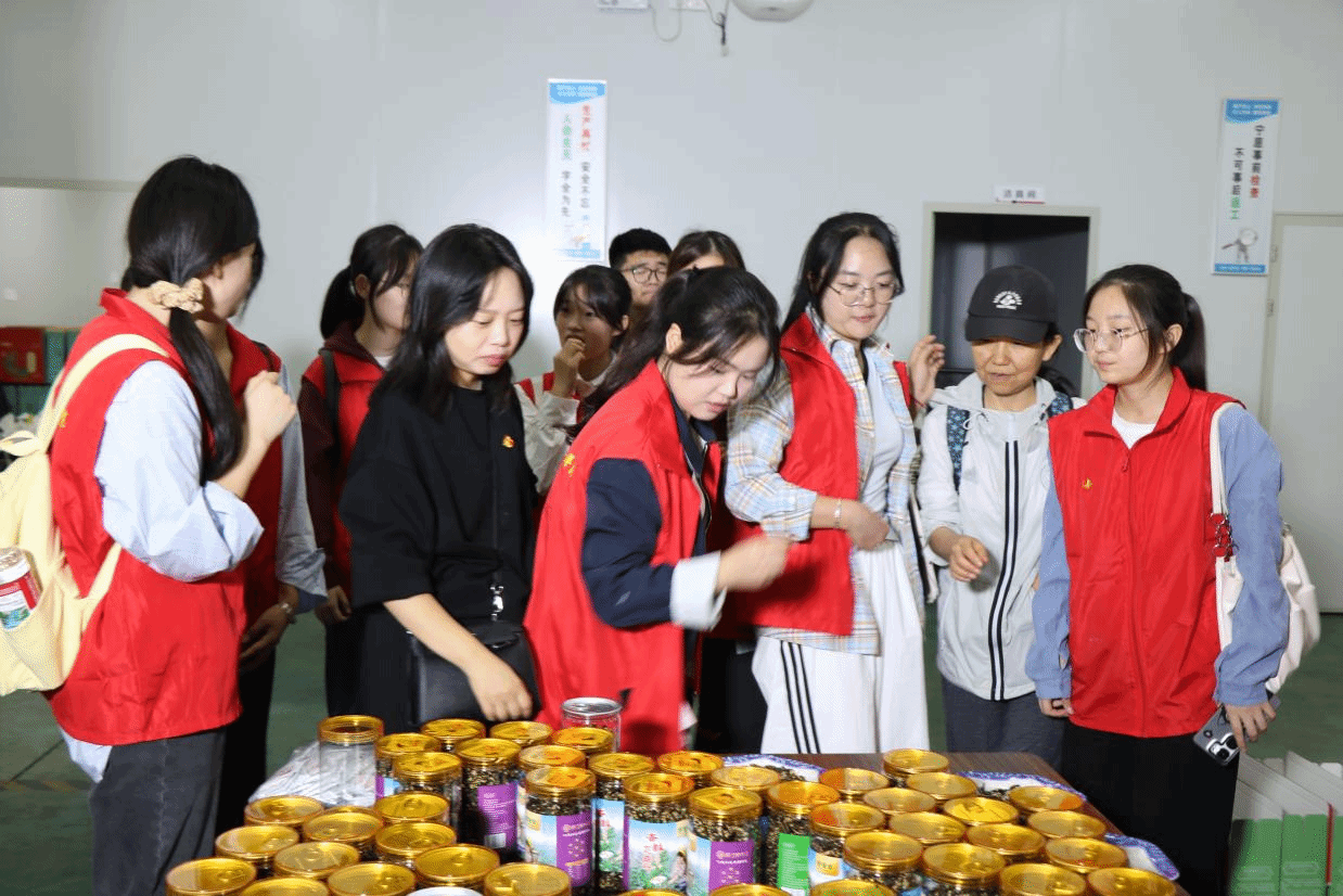 随后,驻村干部带领我院师生,前往村办食品加工厂开展实地走访。在工厂内,大家参观学习芝麻叶加工的主要环节,了解这一本地特色产业的运营情况;现场品尝加工的芝麻叶产品,师生对产品品质给予好评,为村里以特色农产品助力乡村发展的做法点赞。