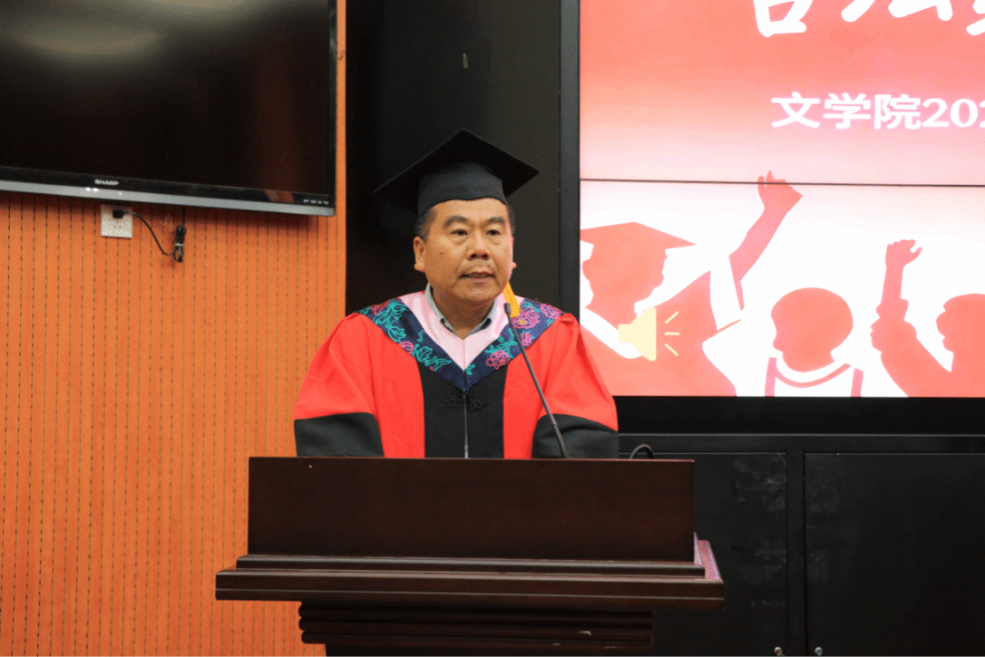 典礼在庄严的国歌声中拉开序幕。文学院院长刘钦荣致辞,代表学院向全体毕业生表示热烈祝贺。他回顾了学院近年来的发展和毕业生们的优异成绩,鼓励大家常怀感恩之心,勇于创新,心系祖国,不负时代。