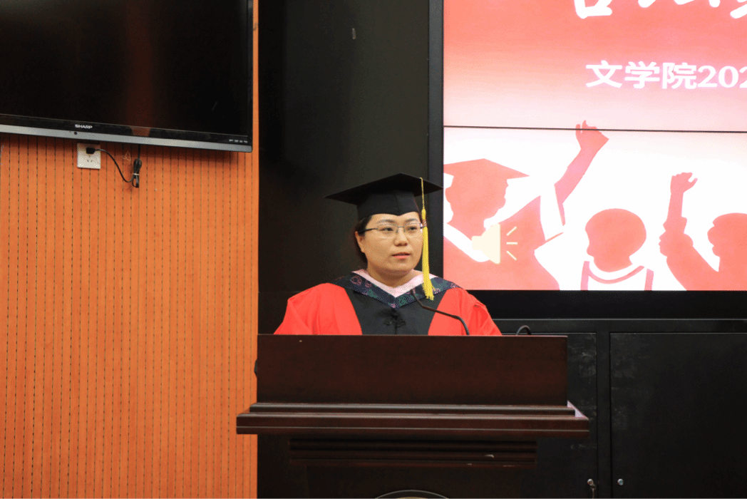 2025年6月13日下午,文学院2025届毕业典礼暨学位授予仪式在文质楼道德讲堂隆重举行。出席本次典礼的有文学院党总支书记杨秀峰、院长刘钦荣、党总支副书记栗旭、副院长牛巧红、杨煊,团总支副书记黑源源,各系主任、教师代表、辅导员及文学院2025届毕业生代表。学院党总支副书记栗旭主持典礼仪式。